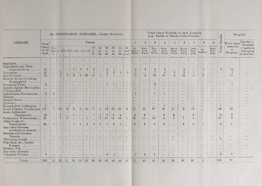 ![37 Ll] >- _l cc llJ Q Z D I- 1 if) < 'Rates in columns 5, 7 and 13 are calculated per 1000 of tbe estimated gross population. Area of District in acres (exclusive of area covered by water) 1983. Total population of all ages, 51040. , At census Number of inhabited houses, 13,871 Average number of persons per house, 3’73. ) of 1931.](https://iiif.wellcomecollection.org/image/b2881275x_0037.jp2/full/800%2C/0/default.jpg)
