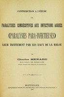 Contribution à l'étude des paralysies consécutives aux infections aiguës (paralysies parainfectieuses), leur traitement par les eaux de La Malou. Public Domain Mark. Source: Wellcome Collection.