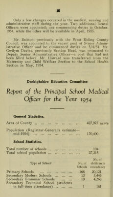 [Report 1954] / School Medical Officer of Health, Denbighshire County Council.