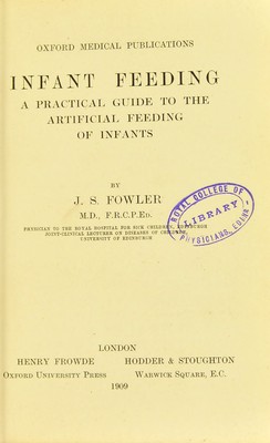 Infant feeding : a practical guide to the artificial feeding of infants / by J.S. Fowler.
