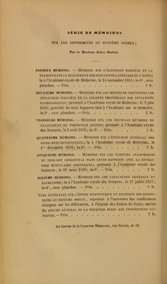 Vues générales sur l'étude scientifique et pratique des difformités du système osseux : exposées à l'ouverture des conférences cliniques sur les difformités, à l'Hôpital des enfans de Paris, le 7 août 1839 : suivies du Résumé général de la première série des conférences cliniques / par Jules Guérin.