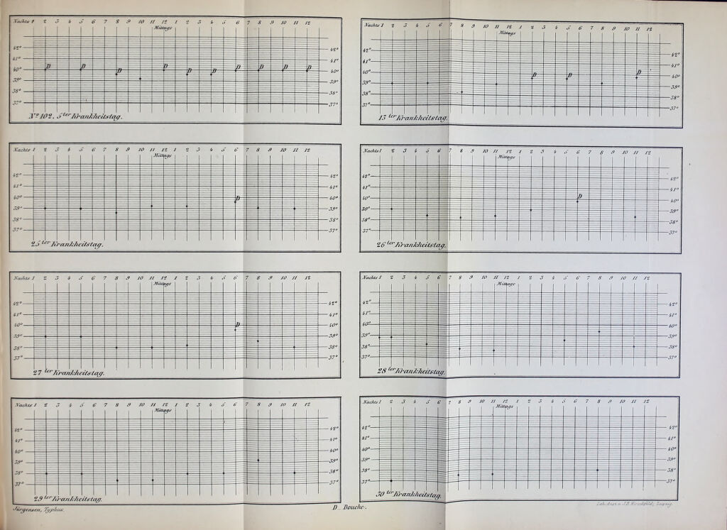 Credit: Klinische Studien über die Behandlung des Abdominaltyphus mittelst des kalten Wassers : nach dem Material der medicinischen Abtheilung des akademischen Hospitals zu Kiel / von Theodor Jürgensen. Source: Wellcome Collection.