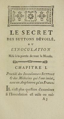 Le secret des Suttons dévoilé, ou l'inoculation mise à la portée de tout le monde / [Joseph Jacques de Gardane].