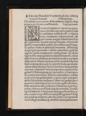 Anatomice sive historia corporis humani. Ejusdem collectiones medicinales seu aforismi / [Alessandro Benedetti].