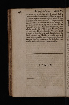 A relation of the voyage to Siam : performed by six Jesuits, sent by the French king, to the Indies and China, in the year, 1685. With their astrological observations, and their remarks of natural philosophy, geography, hydrography, and history. Published in the original, by the express orders of His Most Christian Majesty. And now made English, and illustrated with sculptures.
