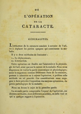 Credit: De l'opération de la cataracte; thèse seutenne publiquement, dans l'amphithèâtre de la faculté de médecine de Paris, en présence des juges du concours; le vendredi 24 Janvier 1812 / par A.E. Tartra. Source: Wellcome Collection.