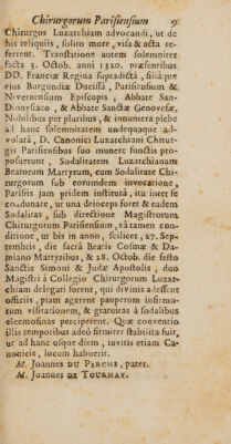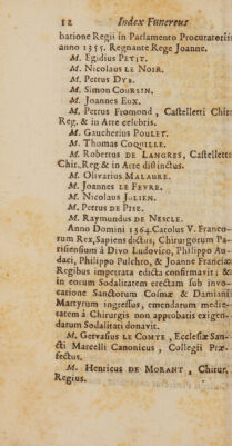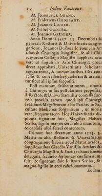 Index funereus chirurgorum Parisiensium, ab anno 1315 ad annum 1714 / Opera M. J[ean] D[e] V[aux].