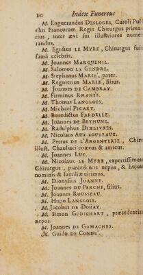 Credit: Index funereus chirurgorum Parisiensium, ab anno 1315 ad annum 1714 / Opera M. J[ean] D[e] V[aux]. Source: Wellcome Collection.