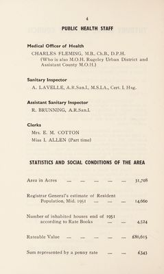 Credit: [Report 1951] / Medical Officer of Health, Tutbury R.D.C. Source: Wellcome Collection.