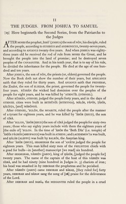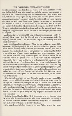 ![twenty-seven years old. And after one year he took rapka (rebecca) to wife, and in his sixtieth year she conceived, and she went to melchisedek to inquire of the Lord concerning what she had conceived. And he said unto her, ‘There are two peoples in thy womb, and the one people shall be greater than the other’, viz. esau, who is ’adom (edom) from whom [sprang] the edomites, and Jacob from whom [sprang] the Israelites, abimelech was a friend to those of the house of Isaac, and he it was who in the year one hundred of [the life of] abraham made war; and the Bible calls him ‘King of ghadhar (gerar in Genesis xx. i) from the name of his city, and here [he is king] of the Philistines, because of the many peoples over whom he reigned. And in the days of Isaac the fifth king of the Assyrians rose up—’aris ; [he reigned] thirty years. And the fifteenth king of the Egyptians, set!s ; [he reigned] nineteen years. This was the first king of the four kings who were called ‘shepherds’. After isaac [came] Jacob his son. When he was eighty-two years old he begot levi ; all [the days of] his life were one hundred and forty-seven years. When he was seventy-seven years old ISAAC blessed him and sent him to harran. And in the tenth year of levi, Jacob went up to Isaac his father. In the third year of levi, Joseph was born, and in the twentieth year of levi, JOSEPH was sold, being seventeen years old. He was a slave for ten years and was in the prison house for three years, and [he stood] before pharaoh for thirty years, and he was in authority in EGYPT for eighty years, and he died at the age of one hundred and forty years. And after isaac died the children of esau were subject to moab and 'ammon, and ’Aram, and they came to war against Jacob and his sons in hebron ; and Jacob prevailed, and he smote esau with an arrow and killed him, and the children of esau were broken before the children of Jacob, and their allies fled. When Jacob was one hundred and thirty years old he went down to Egypt, in the second year of the famine. After Jacob [came] levi his son. When he was forty-seven years old he begot kahath ; all his life was one hundred and thirty and seven years. In his days the flood which [came] in the days of ’agogos took place, when bilos (belus) was reigning in Assyria ; and mapos (memphis) in Egypt was built. And stasikoros [13] (or, stikoros) brought acrobatic dancing and games into the world, for his bringing up (or, education) had been among women. And manos (humanos) the king displayed luxuriousness in his own person (?). And that fourth Shepherd king, ’apapos, reigned in EGYPT fourteen years. He it was who dreamed dreams and who made Joseph ruler, according to the histories of the Chaldeans, and it seemeth likely that the ‘shepherds’ were called ‘kings’ because of Joseph’s brethren. After levi [came] kahath (kohath) his son. When he was sixty years](https://iiif.wellcomecollection.org/image/b31365334_0097.jp2/full/800%2C/0/default.jpg)