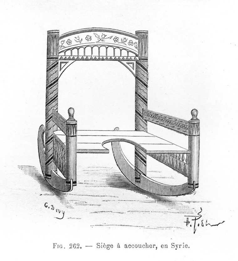 M0007455: Illustration of a Syrian parturition chair on rockers. In copyright. Source: Wellcome Collection.