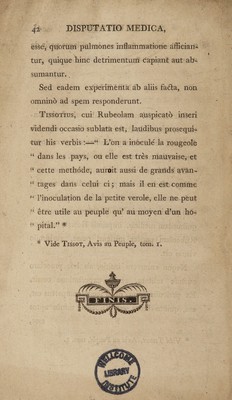 Credit: Disputatio medica inauguralis, de rubeola ... / [John Perkins]. Source: Wellcome Collection.