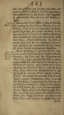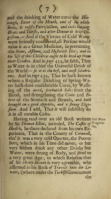 Credit: The curiosities of common water: or the advantages thereof in preventing and curing many distempers. Gather'd from the writings of several eminent physicians, and also from more than forty years' experience. To which are added, some rules for preserving health by diet / By John Smith. Source: Wellcome Collection.