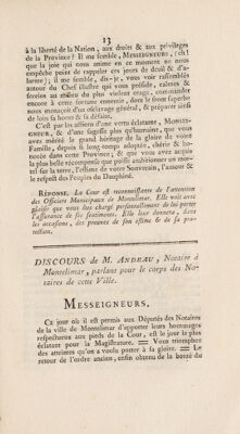 Récit des fêtes données à Grenoble, les 12 et 20 octobre 1788, au retour du Parlement [de Dauphiné]. Ensemble les compliments ou discours prononcés, soit à MM. du Parlement, soit à M. le premier président en particulier ; et toutes les réponses.