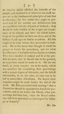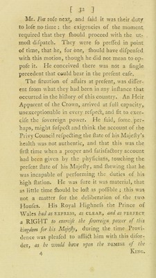 Credit: An history of the late important period : from the beginning of His Majesty's illness, to the settlement of the executive government, in the appointment of a regent. To which are added, observations on the conduct of the two contending parties to the period of His Majesty's re-appearance in the House of Lords / [by Louis Dutens]. Source: Wellcome Collection.