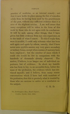 Credit: On the treatment of syphilis and other diseases without mercury : being a collection of evidence to prove that mercury is a cause of disease, not a remedy / by Charles R. Drysdale. Source: Wellcome Collection.