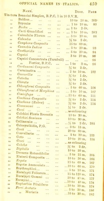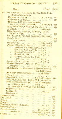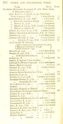 Credit: The extra pharmacopoeia with the additions introduced into the British pharmacopoeia 1885 / by William Martindale ; medical references and a therapeutic index of diseases and symptoms by W. Wynn Westcott. Source: Wellcome Collection.