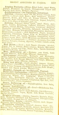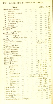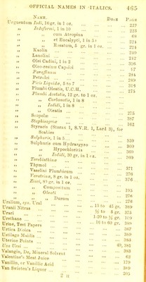 Credit: The extra pharmacopoeia with the additions introduced into the British pharmacopoeia 1885 / by William Martindale ; medical references and a therapeutic index of diseases and symptoms by W. Wynn Westcott. Source: Wellcome Collection.