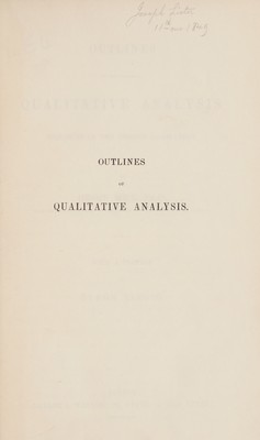 Outlines of the course of qualitative analysis followed in the Giessen laboratory / By Henry Will ; With a preface by Baron Liebig.