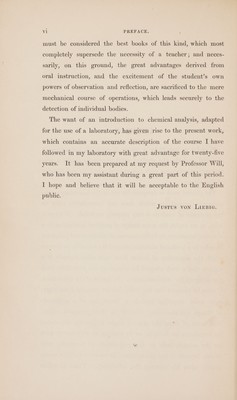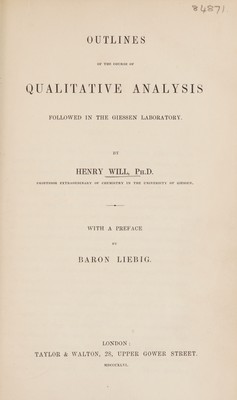 Outlines of the course of qualitative analysis followed in the Giessen laboratory / By Henry Will ; With a preface by Baron Liebig.