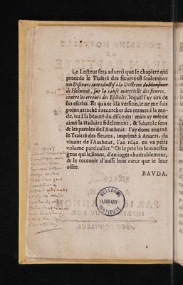 Credit: Doctrine nouvelle ... / touchant les fievres traduite par Abraham Bauda. Source: Wellcome Collection.