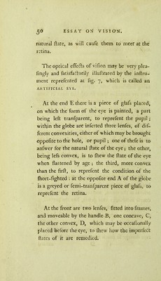 Credit: An essay on vision : briefly explaining the fabric of the eye, and the nature of vision: intended for the service of those whose eyes are weak or impaired: enabling them to form an accurate idea of the true state of their sight, the means of preserving it, together with proper rules for ascertaining when spectacles are necessary, and how to choose them without injuring the sight / by George Adams. Source: Wellcome Collection.