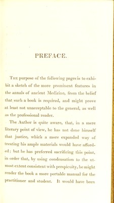 Outlines of the ancient history of medicine ; being a view of the progress of the healing art among the Egyptians, Greeks, Romans, and Arabians / By D.M. Moir.