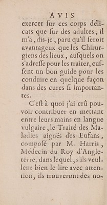 Traité des maladies aigues des enfans. Avec ... une dissertation sur ... la maladie vénérienne / traduit du latin ... sur la séconde éd. imprimée à Londres en 1705, par M. Devaux.