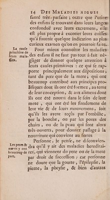 Credit: Traité des maladies aigues des enfans. Avec ... une dissertation sur ... la maladie vénérienne / traduit du latin ... sur la séconde éd. imprimée à Londres en 1705, par M. Devaux. Source: Wellcome Collection.