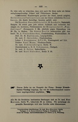 Knabenfreundschaften / von Ludwig Gurlitt. Ethik des Geschlechtslebens / von Ernst Baars. Sexualforschung in Spanien / von Hermann Rohleder. Rundschau. Kritiken und Referate. Bibliographie. Über Vorträge, Vereine und Versammlungen.