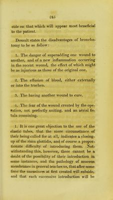Credit: Observations on the surgical pathology of the larynx and trachea : chiefly with a view to illustrate the affections of those organs which may require the operation of bronchotomy : including remarks on croup, cynanche laryngea, foreign bodies in the windpipe, wounds, &c. &c. / by William Henry Porter. Source: Wellcome Collection.