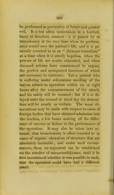 Credit: Observations on the surgical pathology of the larynx and trachea : chiefly with a view to illustrate the affections of those organs which may require the operation of bronchotomy : including remarks on croup, cynanche laryngea, foreign bodies in the windpipe, wounds, &c. &c. / by William Henry Porter. Source: Wellcome Collection.