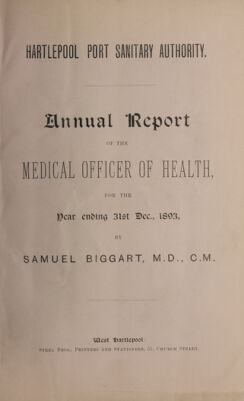 [Report 1893] / Medical Officer of Health, Hartlepool Port Health Authority.