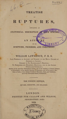 A treatise on ruptures, containing an anatomical description of each species: with an account of its symptoms, progress, and treatment / by William Lawrence.