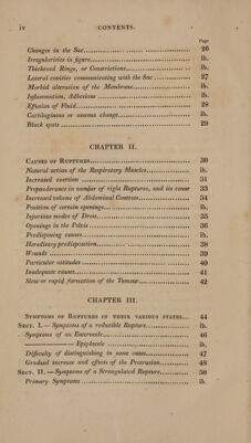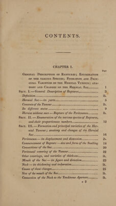 ![CONTENTS. CHAPTER I. GENERAL DeEscripTiON oF Rurtrures; ENUMERATION OF THE VARIOUS SpEciES; ForMATION AND PRIN- cipAL VARIETIES OF THE HeERNrIAL TUMOUR; ANA- TOMY AND CHANGES OF THE HERNIAL SAC........0. Sect. I.—General Description of Rupturesise.ssrccsccecsees De itabide hh, CES ee TON aces ene wih dane eel isi ernzal,. Sacc- 75, DATES csbraroonsss syousss ns ChesRily cpeueetees Contentsof the, Lugiour save cisd<casks rics) eps dekvodetenedee UPS De st Trg LL PEPE TE y EGE PTREP ETL LT EC OTE eee eT CoD Hernia without sacs — Rupture of the Peritoneum.......+. Sect. I]. — Enumeration of the various species of Ruptures, and their proportionate NUmbers,..ccerccgecsereseceeres Sect. II1.— Formation and principal varieties of the Her- nial. Tumour ; anatomy and changes of the Hernial Peritoneum — its displacement and distension. .......+.+000 Commencement of Rupture — size and form of the Swelling Connections Of he Sa. BA FRES Sle BORN Ode Fis elo ecks ae Peritoneal covering of the TUumour...scccccscccrcreccevecsees Other coverings, and varieties of thickness..ecsccsececccseee Mouth of the Sac— its figure and direction.e.....cccceeee Neck — its thickening and indurdtion......ccccccecsesceneees Causes'of these CHAN BES: (ade 2e 10. dics cpienes'e sin va eeacontaesapein Connection of the Neck to the Tendinous Apertureé.....+... a 2 Page QO mt ib.](https://iiif.wellcomecollection.org/image/b33488587_0002_0009.jp2/full/800%2C/0/default.jpg)
