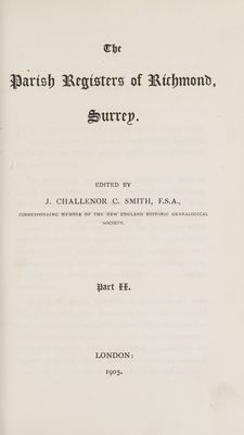 The parish registers of Richmond, Surrey. Part II / edited by J. Challenor C. Smith.