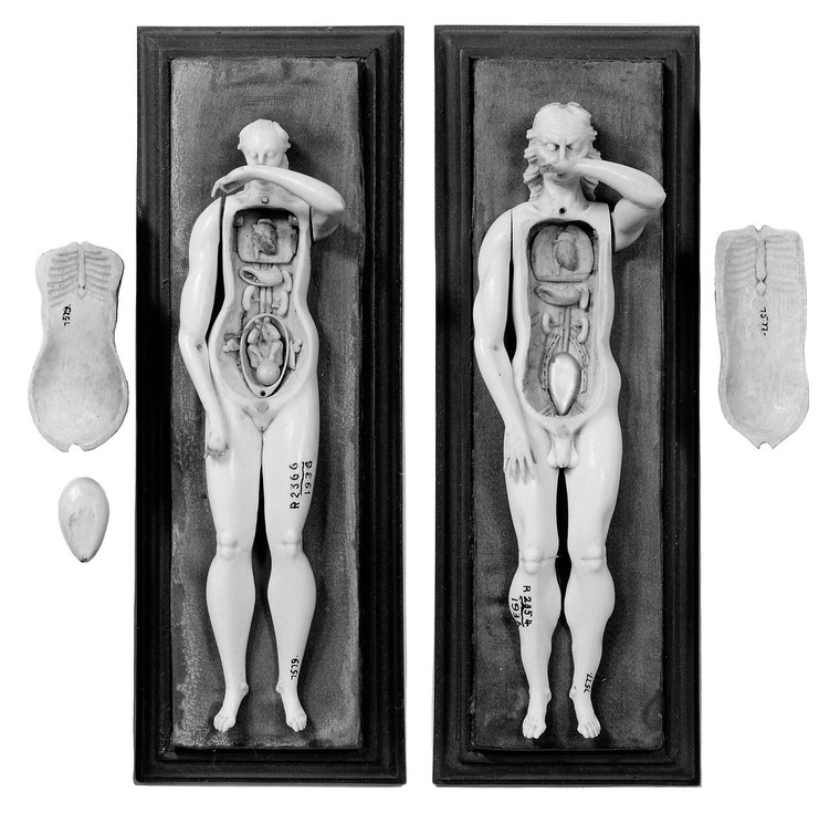 M0018649EB: Anatomical figures in ivory; one female and one male. Attribution 4.0 International (CC BY 4.0). Source: Wellcome Collection.