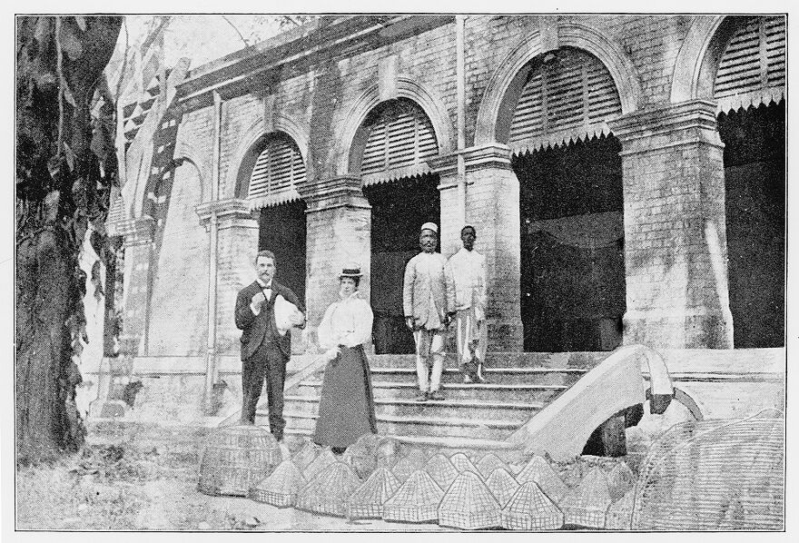 Credit: M0012598EA: Photograph of Ronald Ross, Rosa Ross and Mohamed Bux in Calcutta. Source: Wellcome Collection.