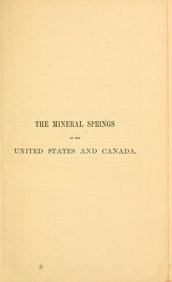 The mineral springs of the United States and Canada : with analyses and notes on the prominent spas of Europe, and a list of sea-side resorts / By George E. Walton.
