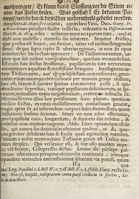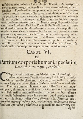 ![flu#tttigete/ <£t* ffame tmrdi ©tofTimpbtbte ©fmte nem fca^teOev fcefletu , gefcfiaf) ? <£r fcefrmtm ttente/me^e buvctj biefcSfiut* mefirentfyette ofyiiltt mortem Ampliora de Alapis five colaphis, a praeclaro Viro, Dno. Georg. Fr* a Iranckcruu peculiari {ludio colledta, videantur in Differtatione Heiddb. A. /674. edita : nolumus enim nos parum tuto , (aaa)ac nulli non molefto , remedio diu inhaerere. Sequitur Fridtio, quae prefius eft lenior, aut fortior, citius vel tardius ftringendo fiens: de qua fupra capite 1L uberius egimus, ut non fit opus cramben hic bis codtam apponere : De Titillatione tamen, ut- ote quae fub eadem comprehenditur, quaedam monendafont. fi: enim haec friftus leniffimus, papillarum in cute nervearum ! extremitates aequaliter & molliffime ftringens, Intelligimus au¬ tem Titillationem, kat efyx*!vfic]di<ftam,nonnefeientes,gene- ratim. etiam unumquodvista&ionis per manum genus titillare, > hoc eft, blande & fuaviter fpiritus commovere poffe , fi qui¬ dem lenior fit prelfus, cutisque papillarum delicatiorum, ac fpi- rrituurnanimalium copia turgefccntium, crebritate inftrudta fit. iMeminifievero illius noc potiffimum loco placuit, quoniam mollior frictus, ex omni molliilimorum contatftuum genere, [magis aptus fit ad inferendum corpori dulcedinem illam, quam |:itiliationis fenfum dicimus. Senes eo non adeo afficiuntur, quodpapilluls cutis, longaevitate, & duriores fint reddita;, & spiritibus non multum turgeant, fbbb) Idem opinandum eft de filis, qui natura fua duriuicuias obtinent easdem , ut &, quo¬ rum graviter debilitata funt & ffatfta quafi aegritudine membra» Tertium a nobis memoratum Tacftionis genus eft Tactus ma- jiiiurn fimplex. Qui vel lenior eft, & line ullo quodam impe™ 'u: vel fortior, Compreflio dieftus. Lenior ille perfepe pal¬ larum admotione peragitur aliquandiu continuata : adeoque Ixpandere vires ultra eam'efficientis fphsram vix poteft, quani ^ ? qua 'aaa)Leg Paullini c. I. Sed IV. c. -/,&Sed. V.c.x /bbb)Hinc recte Q- ! ro: Non eft, inquit, voluptatum tanta quafi titiUath in fenibus Li~ 0 dc Senectute.](https://iiif.wellcomecollection.org/image/b30765274_0061.jp2/full/800%2C/0/default.jpg)