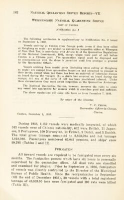 Reports National Quarantine Service : Series VII - 1937 / edited by Wu Lien-Teh and C. Y. Wu.