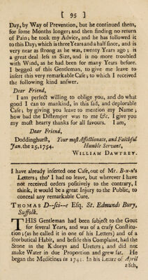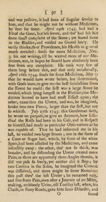 Credit: A treatise of the causes and symptoms of the stone; and of the chief remedies now in use to cure this distemper. Containing, a history of Mrs. Stephens's medicines, and her receipt. Observations upon them. Answers to the objections made against; and cautions to those who use them. An examination of lime-water and soap, and cases concerning them. Of Dr. Jurin's lithontripticum, or soap-lye; and remarks relating therunto. Of soap. Of the liquid shell, and other nostrums. Of forcing and softening remedies. Cases of persons who have taken Mrs. Stephens's preparation, in a solid form, with the sequel of a few printed before ... / By D., brother-in-law to Mrs. Stephens. Source: Wellcome Collection.