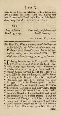 Credit: A treatise of the causes and symptoms of the stone; and of the chief remedies now in use to cure this distemper. Containing, a history of Mrs. Stephens's medicines, and her receipt. Observations upon them. Answers to the objections made against; and cautions to those who use them. An examination of lime-water and soap, and cases concerning them. Of Dr. Jurin's lithontripticum, or soap-lye; and remarks relating therunto. Of soap. Of the liquid shell, and other nostrums. Of forcing and softening remedies. Cases of persons who have taken Mrs. Stephens's preparation, in a solid form, with the sequel of a few printed before ... / By D., brother-in-law to Mrs. Stephens. Source: Wellcome Collection.