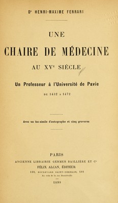Une chaire de médecine au XVe siècle : [Giammatteo Ferrari da Grado] un professeur à l'Université de Pavie de 1432 à 1472.