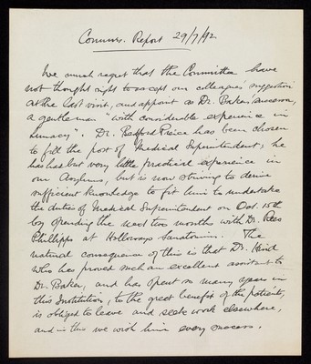 Credit: Extracts from the Retreat Committee minutes for 1892 on the appointment of Pierce as Medical Superintendent. Source: Wellcome Collection.