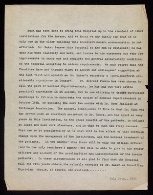 Extracts from the Retreat Committee minutes for 1892 on the appointment of Pierce as Medical Superintendent