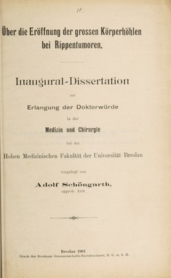 Über die Eröffnung der grossen Körperhöhlen bei Rippentumoren ... / vorgelegt von Adolf Schöngarth.