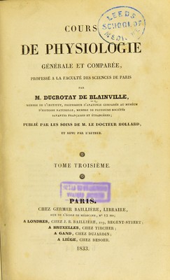 Credit: Cours de physiologie générale et comparée : professé a la Faculté des Sciences de Paris .. / Publié par les soins de ... Hollard, et revu par l'auteur. Source: Wellcome Collection.
