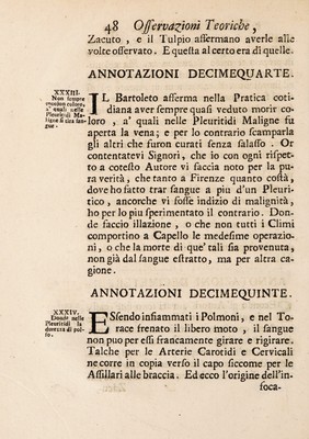 Credit: Osservazioni teoriche, e pratiche di medicina inviate per lettera agli eruditissimi signori di sua privata accademia ... Si disaminano i sintomi di un mal di petto, che il volgo chiama pleuritide cieca ed occulta / [Alessandro Pascoli]. Source: Wellcome Collection.