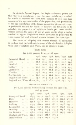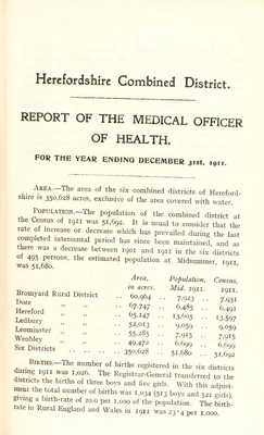 Credit: [Report 1911] / Medical Officer of Health, Herefordshire Combined District/s (Bromyard R.D.C., Dore R.D.C., Hereford R.D.C., Ledbury R.D.C., Leominster R.D.C., Bromyard U.D.C.). Source: Wellcome Collection.